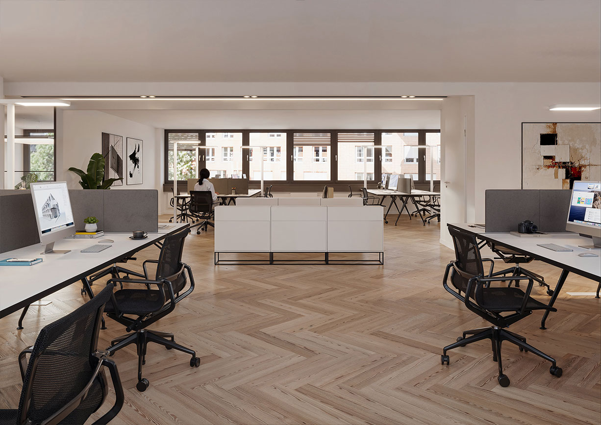 Dank individueller Grundrissgestaltung schaffen wir für Sie Arbeitswelten, die optimal zu Ihren Prozessen und Ihrem Team passen.